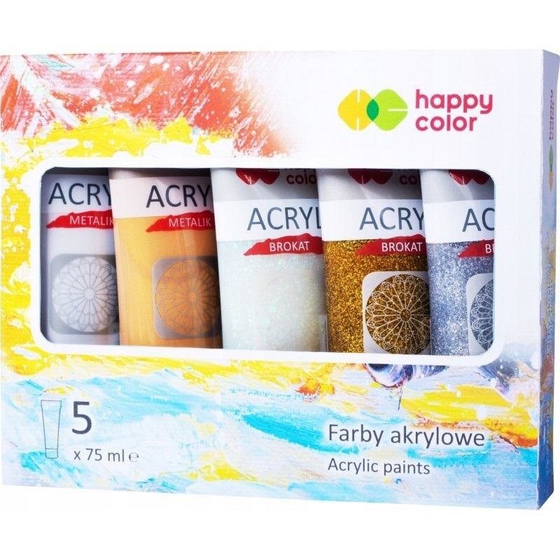 Farba akrylowa zestaw 5 kolorów x 75 ml, kolory metalik i brokat, Happy Color. prečítať celé
