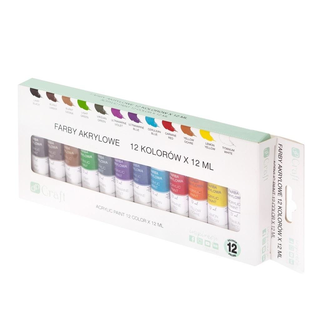 Gęste i wydajne farby akrylowe w 12 kolorach, które można wygodnie łączyć. Doskonałej jakości farby na bazie wody, wodorozcieńczalne. Zapewniają idealne krycie i trwałość na powierzchniach typu papier, karton, płótno, drewno, gips itp. W opakowaniu 12 podstawowych kolorów w tubkach o pojemności 12 ml. Produkt jest bezpieczny i nietoksyczny, posiada CE
