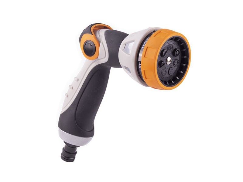 Pistole zavlažovací - snadné ovládání průtoku vody palcem- ergonomicky tvarovaná pogumovaná rukojeť- pracovní tlak 2 - 7 Bar- Funkce: sprcha, mlha, chrlič, kužel, střed, plocha, proud prečítať celé