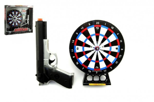 Pištoľ laserová 23cm + terč 19cm plast na batérie so svetlom so zvukom v krabici 32x29x5cm