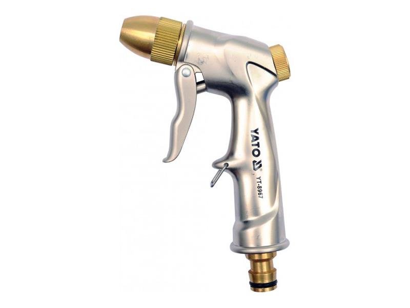 Pistole zavlažovací YATO YT-8967 Postřikovací pistole se dvěmi nastavitelnými funkcemi (proud, mlha), regulací průtoku a uzamknutím pro trvalý průtok. Pohodlné připojení hadic rychlospojkou 1/2". Nejlepší poměr cena kvalita. Dlouhá životnost. Materiál mosaz.Značka YATO se...