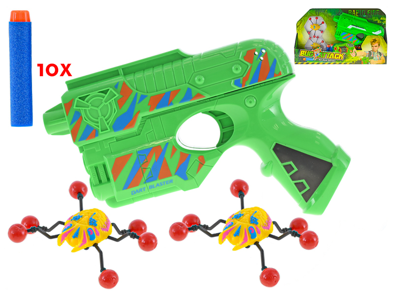 Pistole Bug's Attack 21cm s pěnovými náboji a terči v krabičce