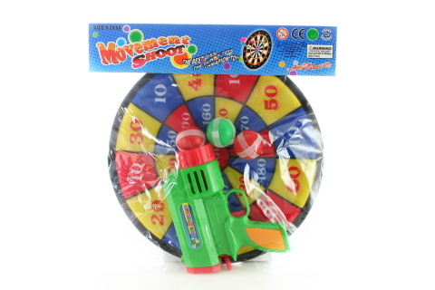 Balení obsahuje terč o velikosti cca 27 cm,3 míčky na sucý zip o velikosti cca 4 cm a plastovou pisktolku o velikosti cca 15 cm.Věk 3+ prečítať celé