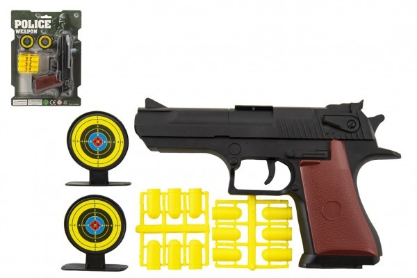 Pištoľ špuntovka 17cm plast + náboje 12ks + terč 2ks na karte