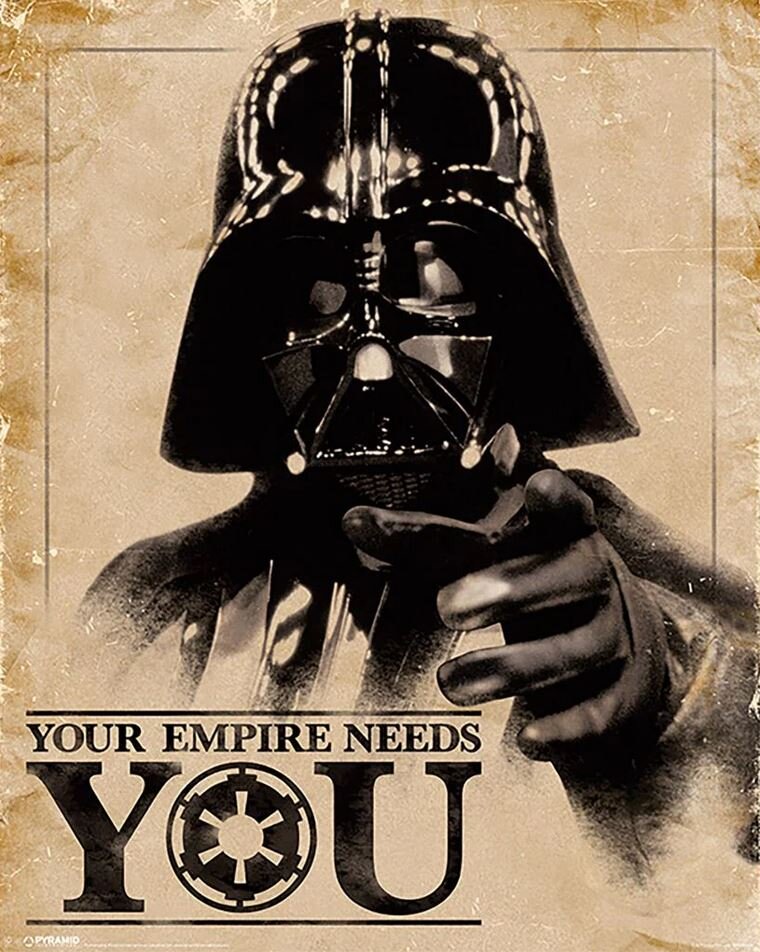 Oficiální produkt - plakát z katalogu výrobků s logem, grafikou a licencí populární americké multimediální franšízy Star Wars (Hvězdné války).Zboží je legálně licencováno a prodáváno se souhlasem vlastníků licenčních práv.Plakát ve formátu 40 x 50 cm s grafikou a nápisem: ,,Your Empire needs...