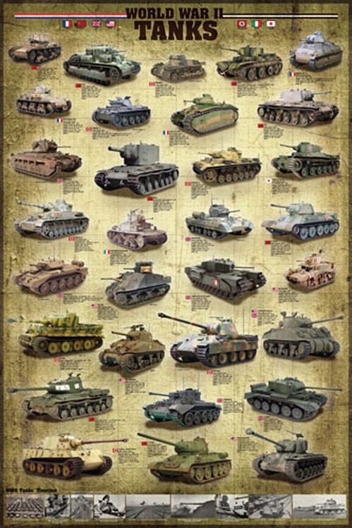 Plakát, Obraz - Tanks of WWII, 61 × 91.5 cm