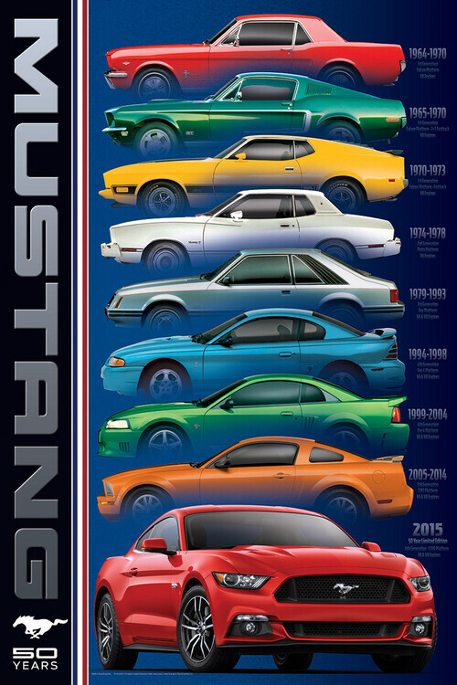 Plakát, Obraz - Ford Mustang 50 Years-9 types, 61 × 91.5 cm