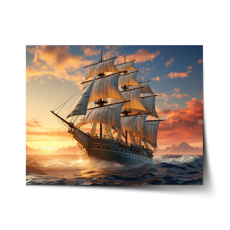 Plakát Plachetnice ve vlnách při východu slunce: 90x60 cm