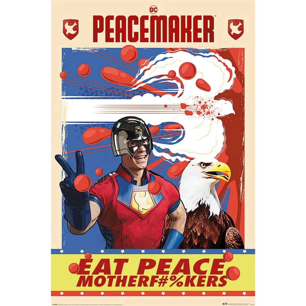 Plakát s grafikou Peacemakera a jeho věrného orla Eagly ze seriálu Jamese Gunna. Ta pravá výzdoba doupěte každého fanouška, který to myslí s mírem smrtelně vážně. prečítať celé