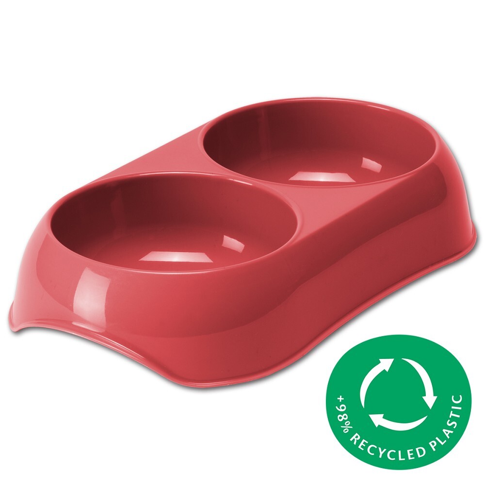 Gusto dvojmiska na vodu a granule pro kočky nebo malá plemena psů. Je součástí ucelené řady +98% RECYCLED PLASTIC, která sleduje moderní trend výrobků z recyklovaných materiálů zbavených látky BPA (bisfenol A).• Snadno omyvatelná• Praktické výřezy - pro snadnější manipulaciObjem: 2 x 200 mlRozměry: 23 x 13 cm / výška 4,1 cmBarva: korálová