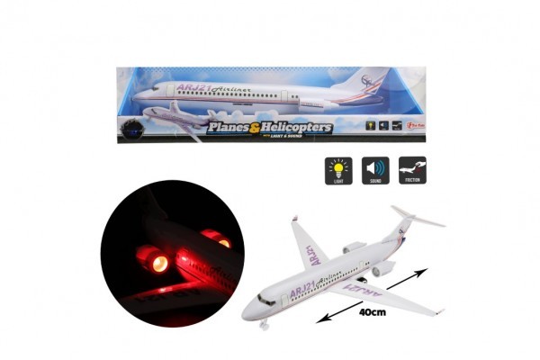 Letadlo plast 43cm na setrvačník na baterie se zvukem a světlem v blistru