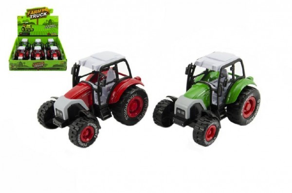Traktor plast/kov 14cm asst 2 barvy na zpětné natažení 6ks v boxu