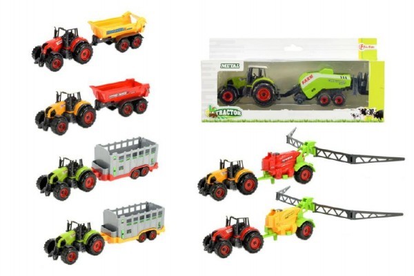 Traktor s vlečkou kov/plast 23cm asst 6 druhů v krabičce