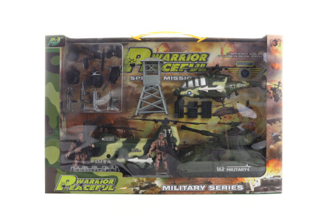 Plastová vojenská sada s 2 vrtulníky a tankem (rozměr cca 19 x 11 x 11,5 cm). Součástí balení je také pozorovací věž, 2 vojáci, zbraně a doplňky. Rozměr balení cca 45 x 30 x 12 cm. Věk 3+ prečítať celé