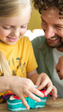 S touto sadou ľahko pripravíte farebné modelínové torty, ktoré vyzerajú ako skutočné. Stačí pridať cesto Play-Doh do formy, vložiť do „rúry“ a počkať na povestné CINK. Potom už môžete torty zdobiť pomocou špachtle, vytlačovacieho nástroja a formičiek - vyberte si veselé tvary, veselú polevu a bláznivé posypky podľa nálady.