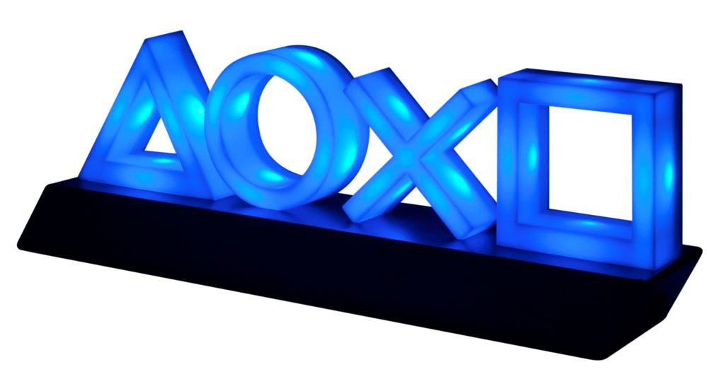 Stolní dekorativní lampa ve tvaru ikonických tlačítek Playstation.