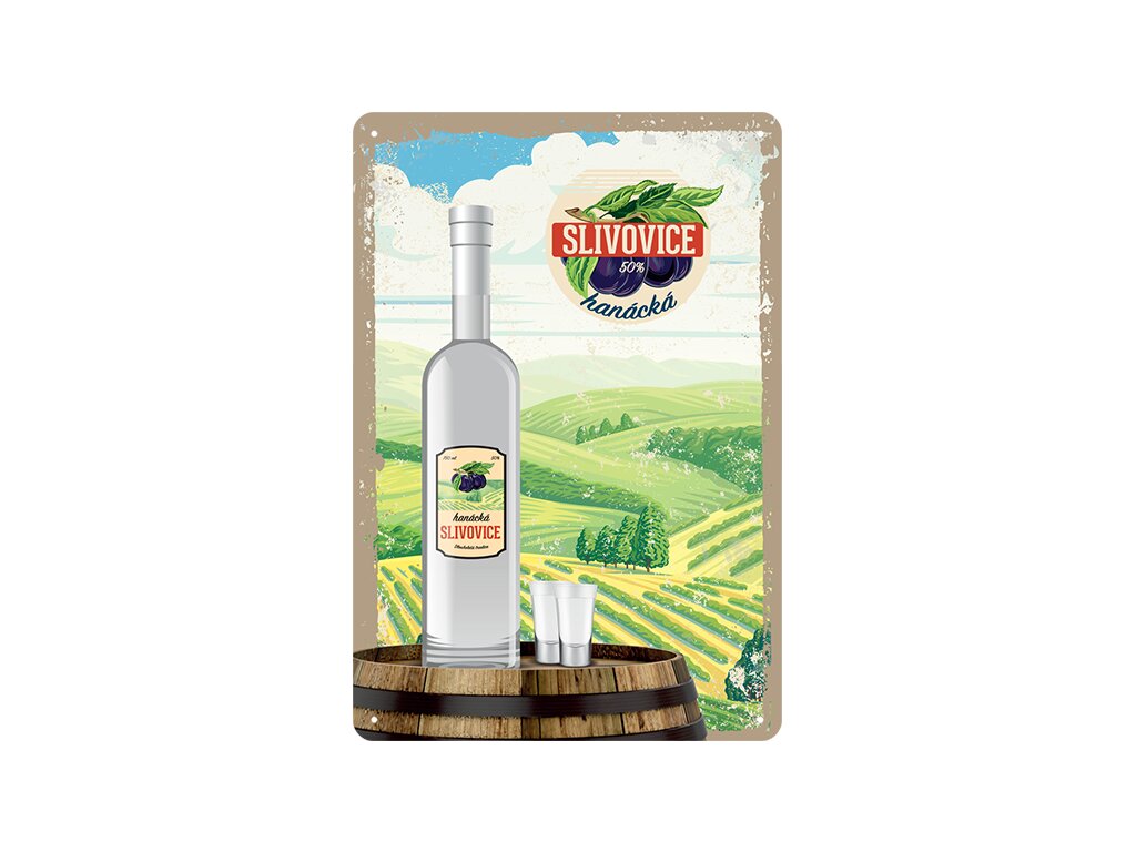 Retro plechová cedulka s textem "Hanácká slivovice".Rozměr: 20 x 30 x 0,3 cmMateriál: smaltovaný plech prečítať celé
