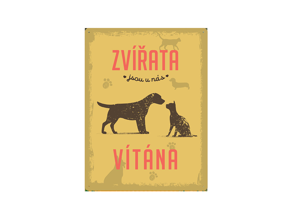 Retro plechová cedulka s textem "Zvířata jsou u nás vítána".Rozměr: 30 x 40 x 0,3 cmMateriál: smaltovaný plech prečítať celé