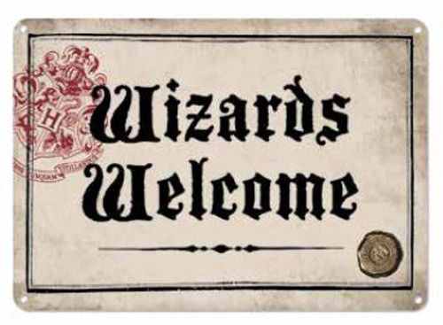 Plechová cedule na zeď s grafikou z filmové ságy o Harrym Potterovi.