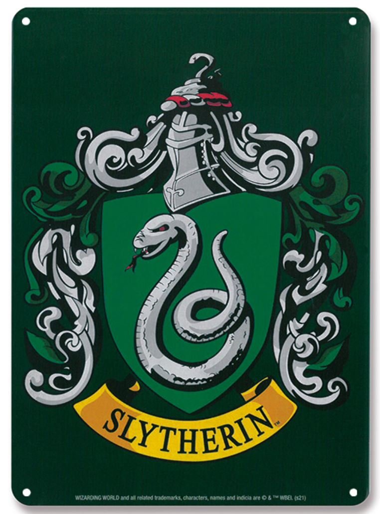 Cedule na zeď se znakem koleje Slytherin (Zmijozel) z filmové ságy Harry Potter.