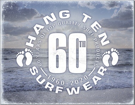 Plechová cedule Hang Ten - 60th, 41 × 32 cm
