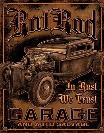 Plechová cedule GARAGE - Rat Rod, 31.5 × 40 cm