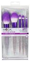 V této 6dílné sadě najdete všechny štětce potřebné pro každodenní makeup. Celkový styl štětců je fialový s poloprůhlednou rukojetí naplněnou třpytkami.