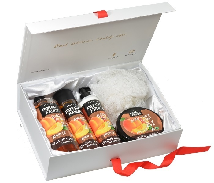 Luxusní balení kosmetiky s meruňkovým olejem pro péči o pokožku těla i obličeje ve velké dárkové krabici. Příjemná vůně meruněk vás bude provázet po celý den. Rozmazlujte své blízké kosmetikou s úžasnou vůní sladké meruňky, která dokáže působit na všechny smysly lidského těla, oživuje mysl a...