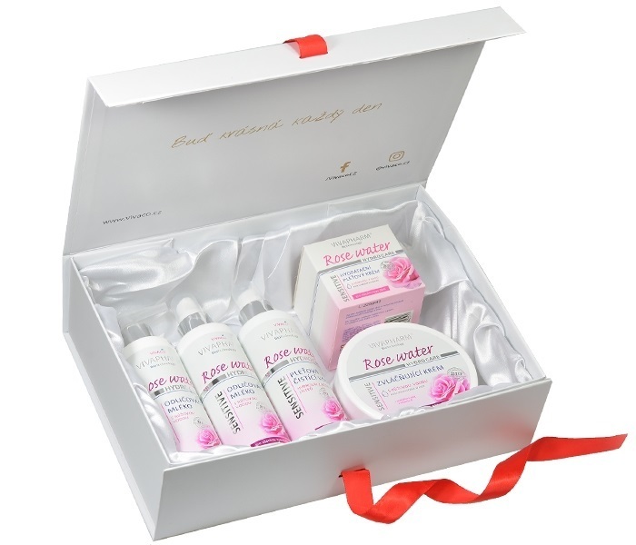 Luxusní balení hydratační péče s růžovou vodou ve velké dárkové krabici. Hydratační péče s růžovou vodou vám zajistí dlouhodobou hydrataci a výživu pokožky celého těla. Kosmetika s vysokým obsahem hydrolátu z damascénské růže, zvláčňujících rostlinných olejů a vitamínu E je určená pro každodenní...