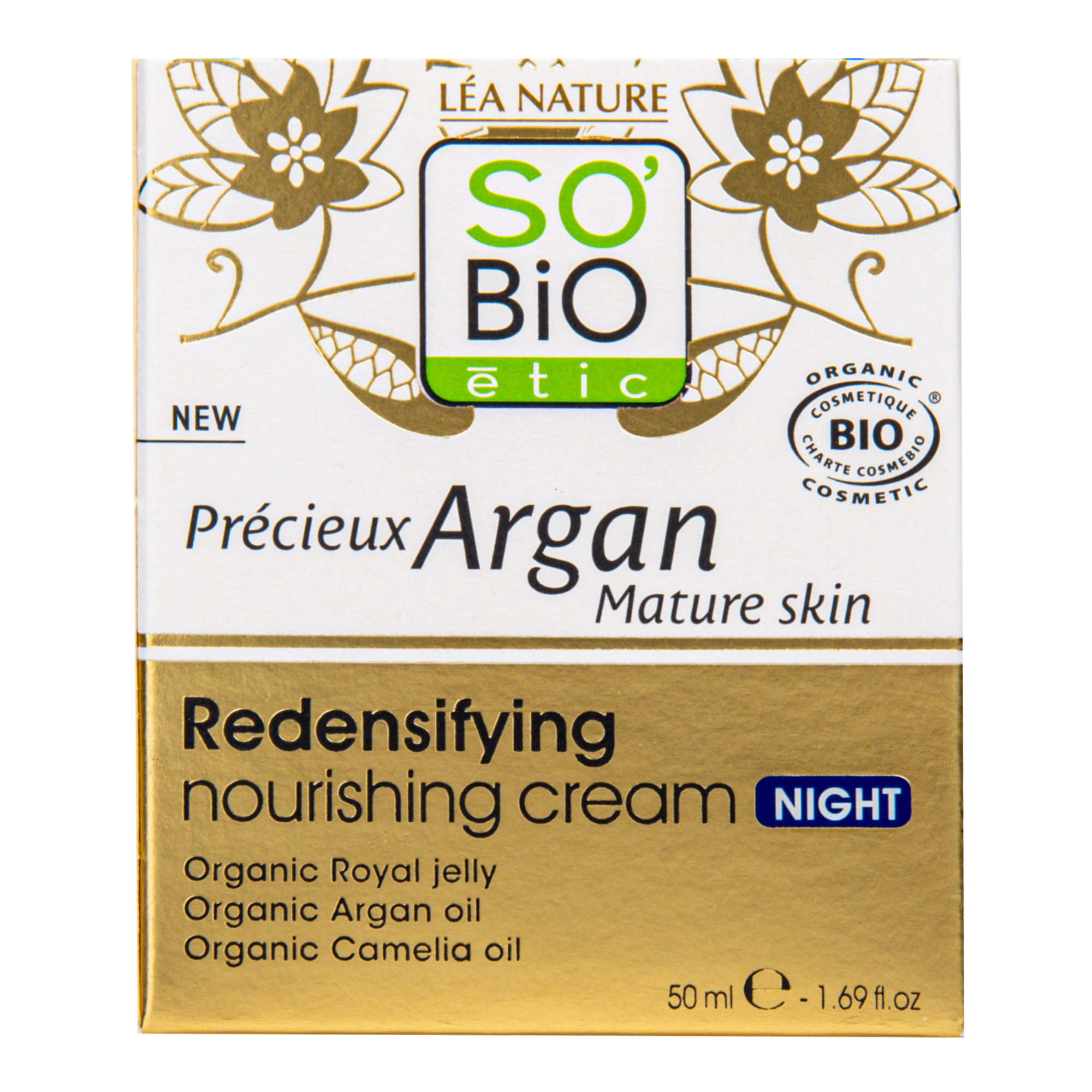 Krém noční výživný a zpevňující GOLD 50 ml BIO zralá pleť Precieux argan SO’BiO étic
