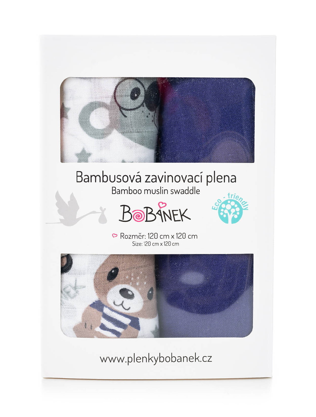 Bobánek Bambusové zavinovací pleny Duo Pack - Medvídci v triku 120 x120 cm