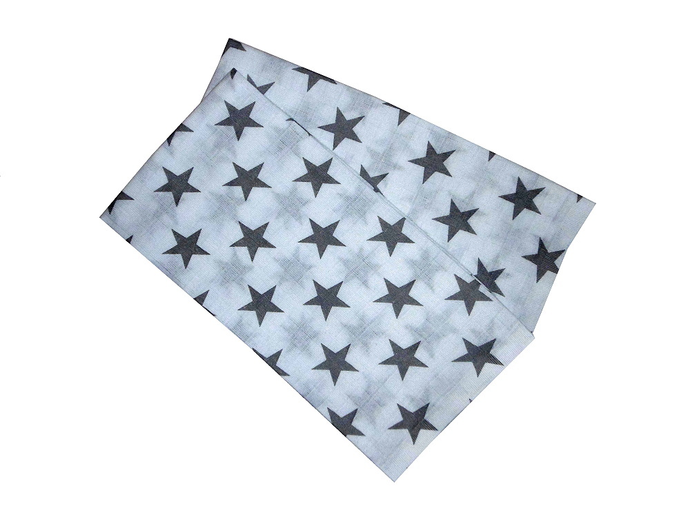 jedná se o tetra plenu se vzorem šedých hvězdiček - plena je tkaná v klasické dutinné vazbě s typickou čtvercovou strukturou. Má dva okraje pevně vytkávané a dva pevně založené (což minimalizuje možnost třepení okrajů při praní a jejím používání) jsou ekologicky nezávadné, mají Certifikát...