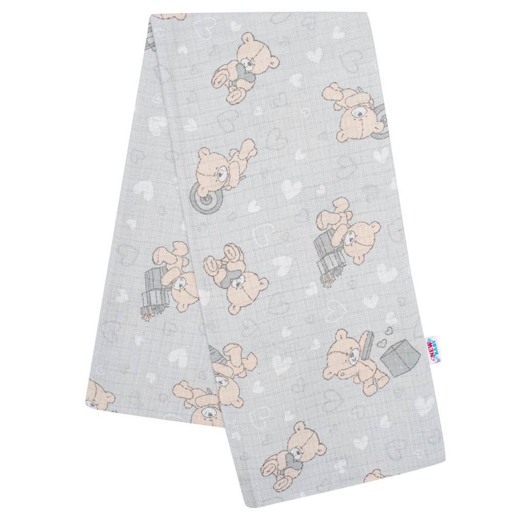Bavlnená plienka s potlačou New Baby sivá medvedík a srdiečko