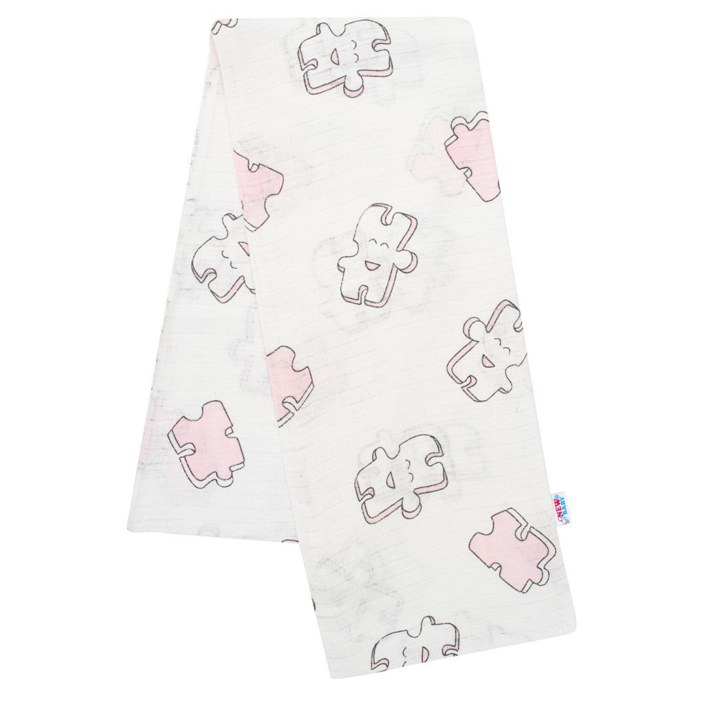 Bavlněná plena s potiskem New Baby bílá puzzle růžové
