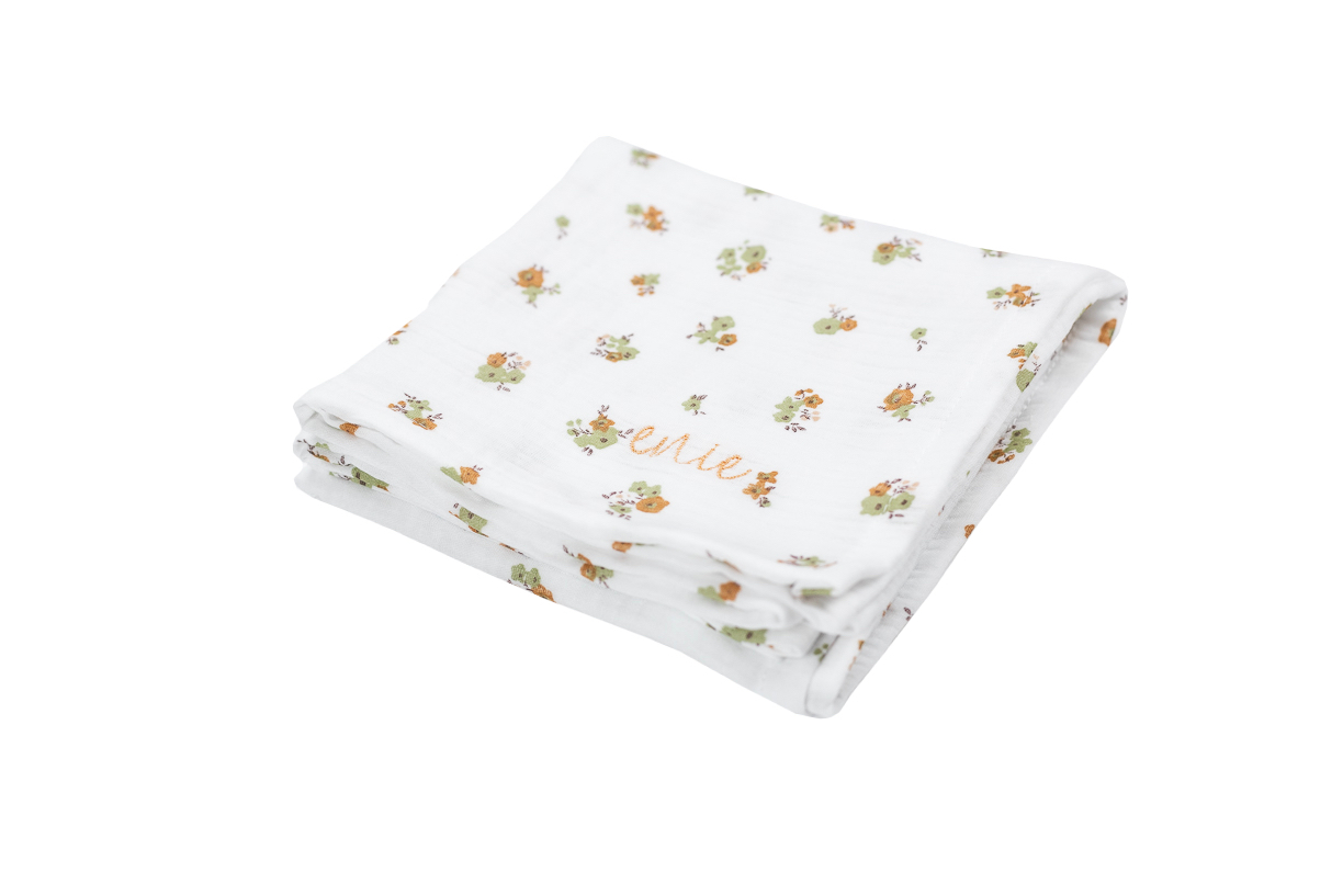 enie baby Mušelínová plenka 70x70cm bílé se zelenými květy - 1ks