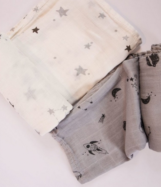 Minene Sada látkových plenek bambus/mušelín - bílá, šedá