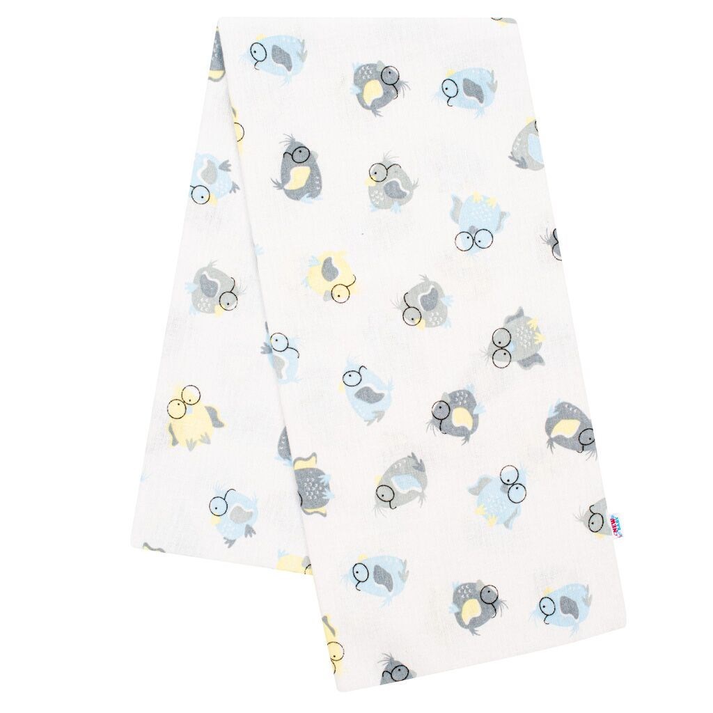 Flanelová plena s potiskem New Baby bílá šedo-modré sovy v brýlích