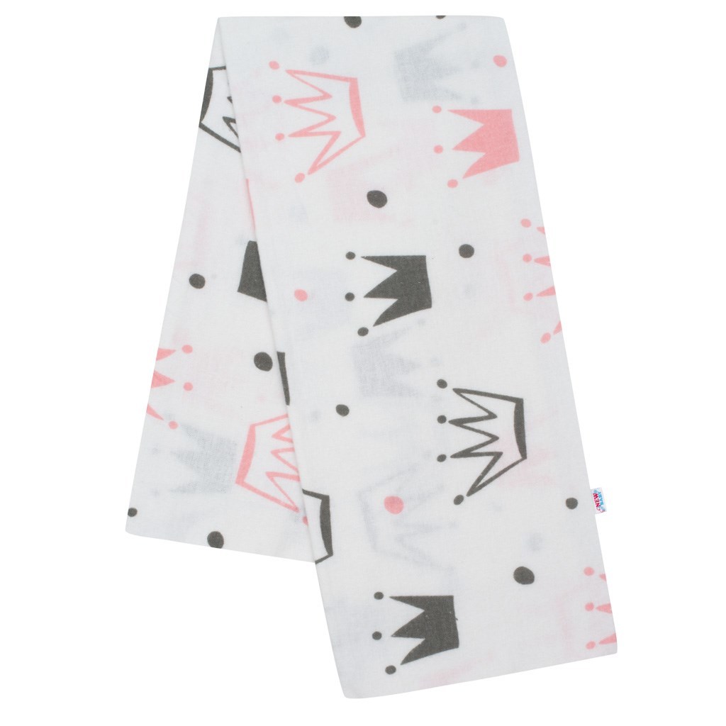 Flanelová plena s potiskem New Baby bílá korunka růžová
