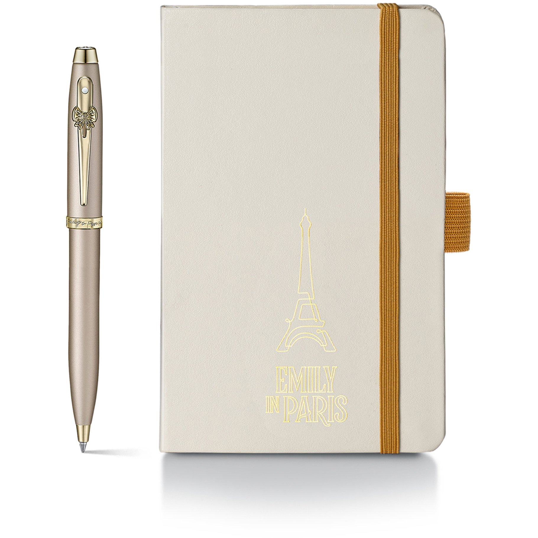 Kuličkové pero Sheaffer 100 Champagne Gold se zářivými ozdobami a charakteristickým emblémem ve tvaru mašle se krásně hodí k kompaktnímu zápisníku s pevnou vazbou. Tato elegantní sada s emblémem inspirovaným seriálem Emily in Paris je ideální pro stylové zaznamenávání myšlenek – ať už u stolu... prečítať celé