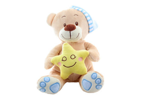 Plyšový medvídek s hvězdičkou o rozměrech 23x15x18 cm. Věk 0+ prečítať celé