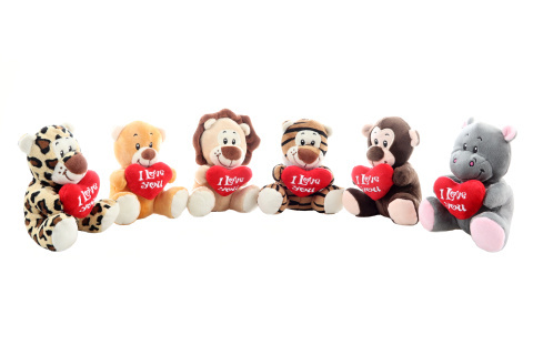 Plyš 6 druhů divoké zvířátko se srdíčkem 14 cm