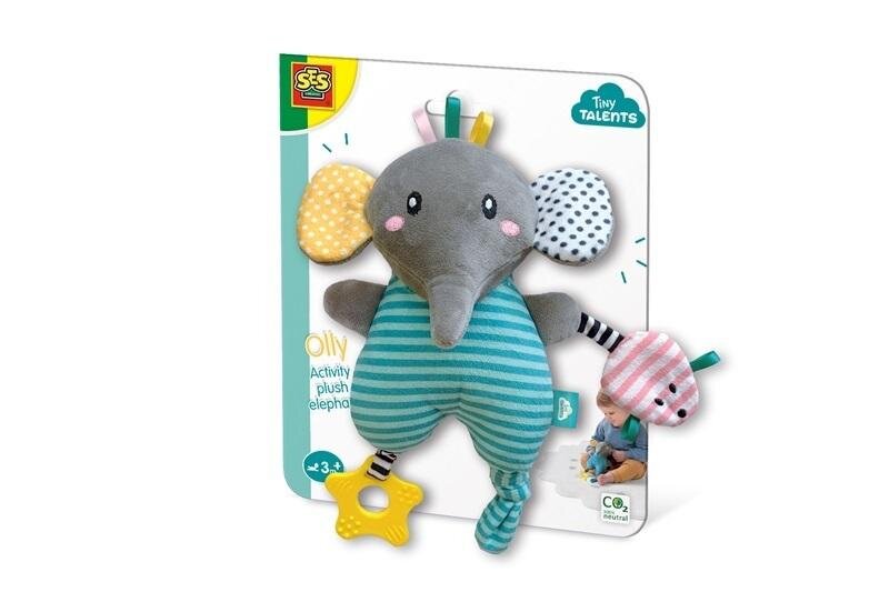 Olly to nowy przyjaciel Twojego dziecka. Miękkie tkaniny, różnorodne faktury i szeleszczące elementy pobudzą rozwój maluszka. Przyczepiona do nóżki słonia gwiazdka sprawdzi się podczas ząbkowania a grzechotka umieszczona w brzuszku zaciekawi dziecko. Olly to idealny towarzysz niemowląt po 3 miesiącu życia.