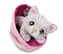 NICI 61331 Maskotka kotek 12cm szary pręgowany w różowym koszyku