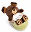 NICI 49748 Maskotka piesek brązowy 12cm śpiący w koszyku, zielony GREEN