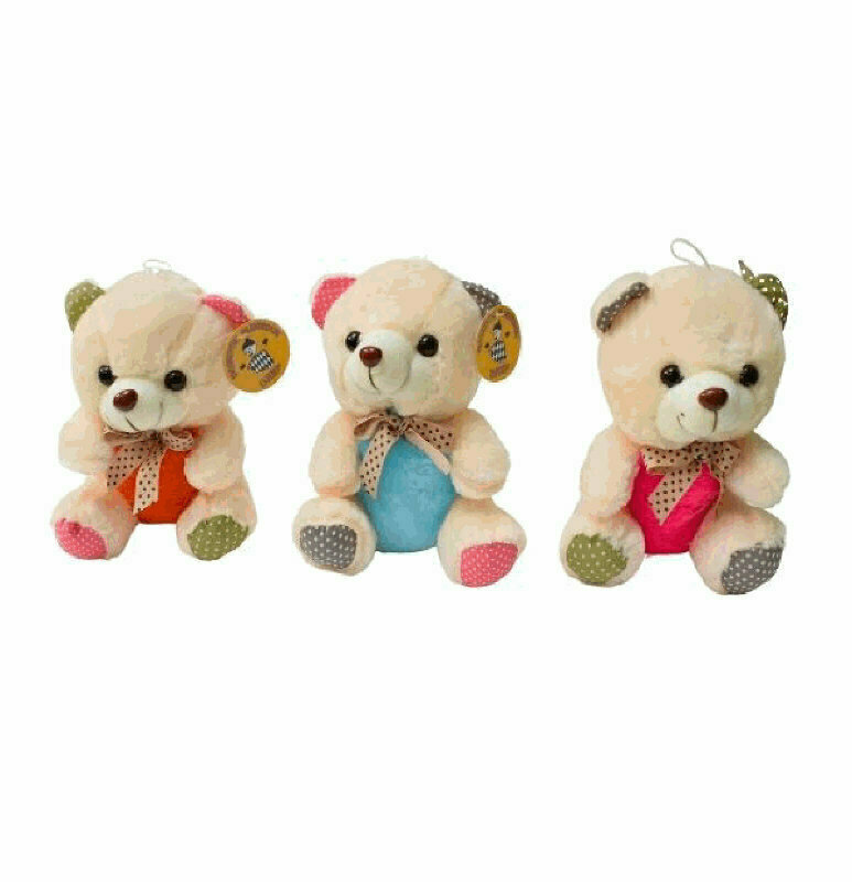 Maskotka pluszowa Miś siedzący kolorowy z kokardą 19cm 3962