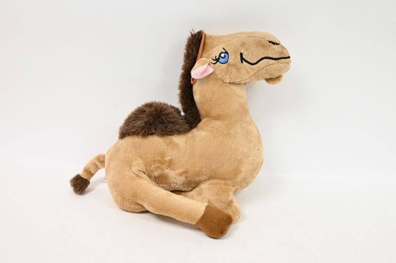Uroczy pluszowy wielbłąd to sympatyczny towarzysz zabaw i zasypiania. Ma miękkie futerko w piaskowym kolorze, puszysty garb oraz wyhaftowane, błyszczące oczko. Wygląda przyjaźnie i z pewnością przypadnie do gustu każdemu dziecku. Dzięki swojej formie idealnie sprawdzi się jako dekoracja pokoju lub maskotka do przytulania.
