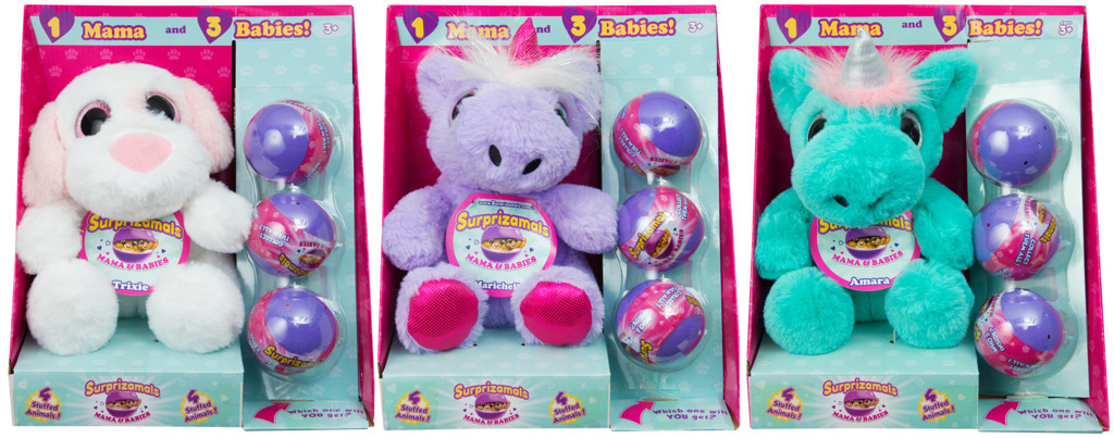 Plyšové zvířátko + 3 miminka jako překvapení v kapsli. Do posledníchvíle nevíš jaká miminka jsou v kapslích ukryta. Ve třech designer –pejsek Trixie, Jednorožec Marichell a Jednorožec Amara. Velikost plyšovéhozvířátka 28 cm. prečítať celé