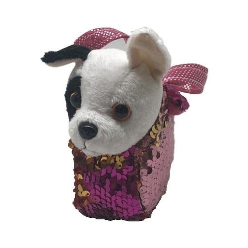 Pluszowy piesek w cekinowej torbie. prečítať celé