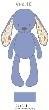 - długie uszy z kolorowym materiałem po wewnętrznej stronie,