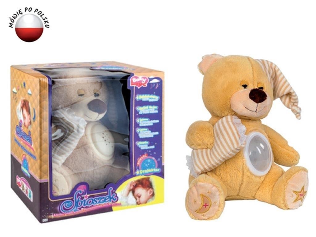 MIŚ ŚPIOSZEK beżowy b/o wysokośc ok. 30 cmZabawka ma uspakajający wpływ na małe dzieci. Sprawdza się doskonale jako pomoc w usypianiu. Łagodnym, kobiecym głosem śpiewa 4 polskie kołysanki. Przytulanka ma wbudowaną lampkę z projektorem. prečítať celé